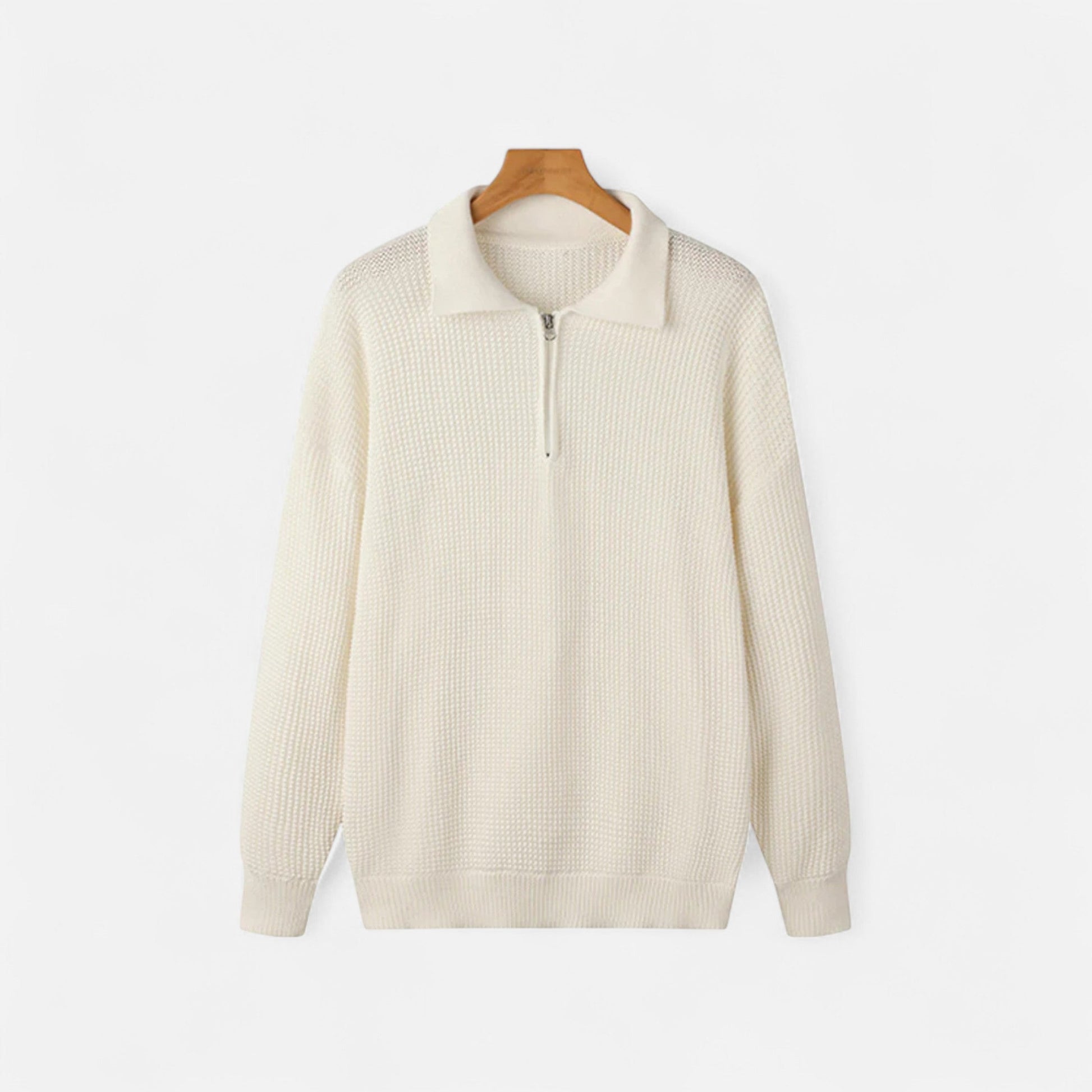 The Velour Boutique | Half-Zip Sweater delivers refined warmth for the colder seasons. With its loose silhouette and polished half-zip detail, it balances effortless sophistication with everyday comfort. Ideal for layering or wearing on its own, it introduces understated luxury to both leisure and casual occasions.