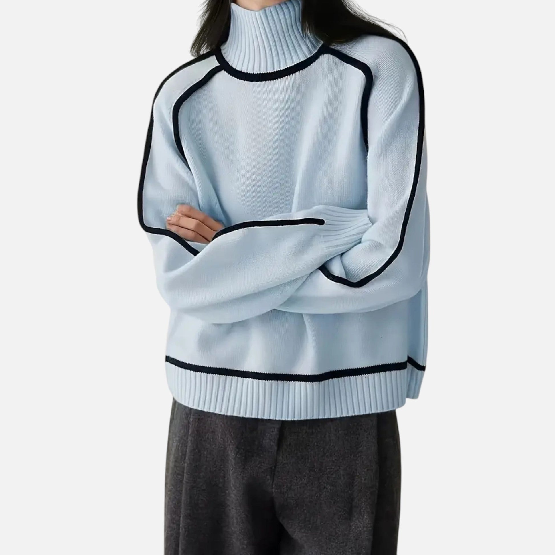 The Velour Boutique | Women’s Striped Pullover Sweater blends refined comfort with a modern edge. Designed with a high neckline, raglan sleeves, and an elegant striped knit pattern, it offers a polished yet relaxed silhouette that transitions effortlessly from casual days to refined gatherings.